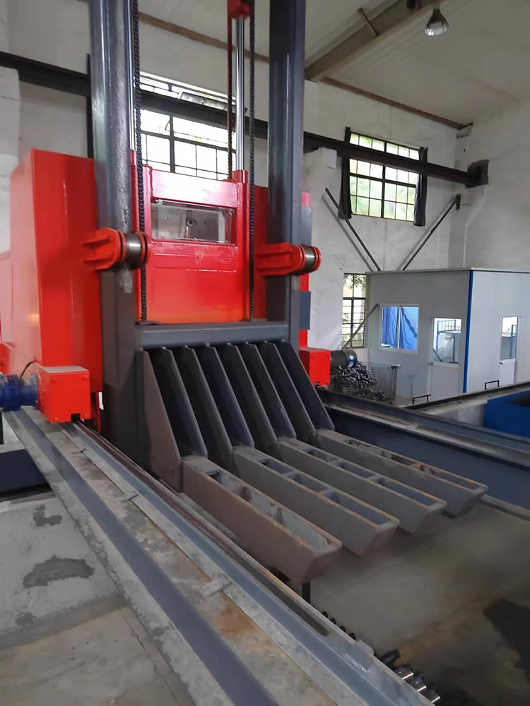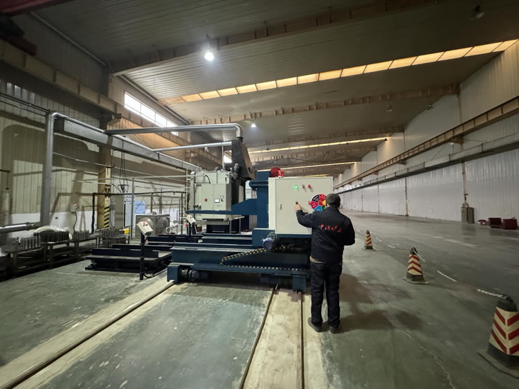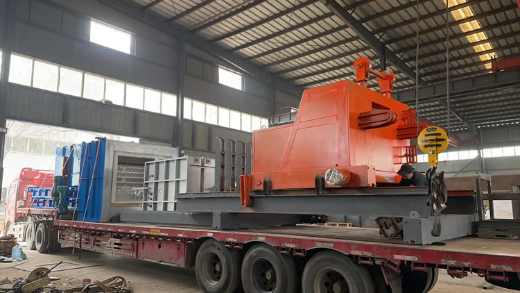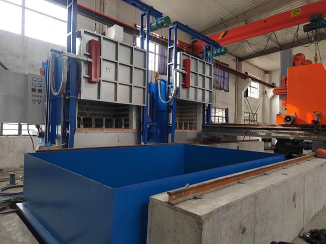 4、回火裝爐:瀝水完成后——料筐轉(zhuǎn)移到回火爐爐口——爐門(mén)開(kāi)啟——中轉(zhuǎn)車(chē)把工件送入回火爐膛——中轉(zhuǎn)車(chē)自動(dòng)退出——爐門(mén)關(guān)閉——裝爐工作完成。