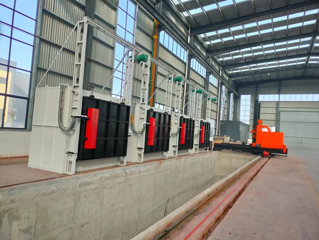 快速淬火機(jī)組生產(chǎn)線,一個(gè)機(jī)組可以根據(jù)用戶的產(chǎn)量和工藝要求配套幾臺(tái)不同的爐型,爐子的數(shù)量和爐型可以自由組合,本生產(chǎn)線可滿足不同的生產(chǎn)工藝,如:淬火、回火、退火、調(diào)質(zhì)等熱處理工藝,爐溫有1200℃,950℃,700℃等,每條生產(chǎn)線配有一臺(tái)快速下水淬火操作車(chē),該操作車(chē)可上下、左右、前后六個(gè)方向移動(dòng)。工件加熱爐內(nèi)加熱完成后,操作車(chē)迅速進(jìn)入爐內(nèi)將工件從爐膛內(nèi)叉出,并快速落入水池或淬火液池內(nèi),整個(gè)過(guò)程在1分鐘內(nèi)完成,生產(chǎn)效率高,操作方便,從而保證了工件的淬火質(zhì)量。