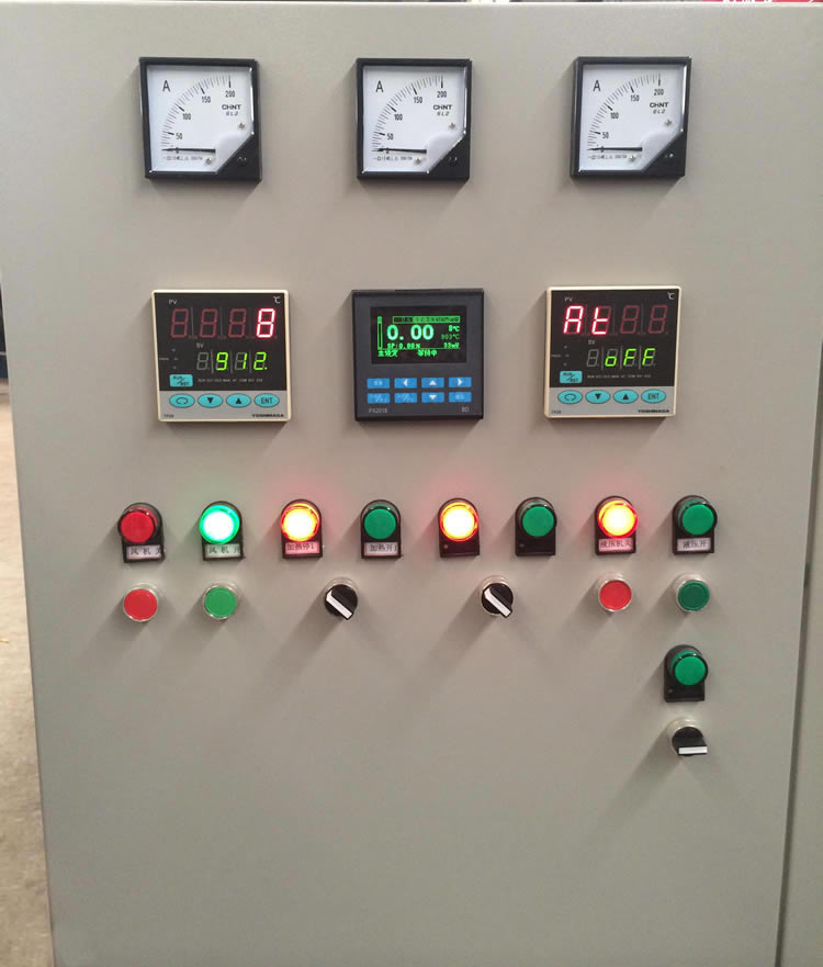 1、控溫儀表采用廈門宇電AI518AP-G-L1智能程序控制儀表,精度0.3級,控溫偏可達±2℃。人機界面采用深圳W EINVIEW威綸7吋觸摸屏,通過通信協(xié)議與智能儀表相連,把儀表操作菜單在觸摸屏**展開,這樣操作更真觀,更方便,在不更改儀表參數(shù)時, 觸摸屏顯示電爐各區(qū)的工作狀態(tài)(用戶可以有選擇性的采用)。